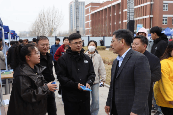 张效松、王建明现场走访企业,详细询问企业的招聘需求、对学校人才培养及对毕业生的评价建议,希望企业与学校建立长期紧密的合作关系,共建实习就业基地,共谋发展,与现场求职毕业生亲切交谈,了解求职情况及就业期望,鼓励学生积极应聘,向应聘单位充分展示能力特长,把握机会。同时要求现场的领导、专业带头人、辅导员,做好学生组织动员,积极推荐,特别是困难群体毕业生,做到精准帮扶,优先推荐,要充分利用好双选会规模优势,加强就业育人实践教育,积极与企业对接,拓展校企合作空间。