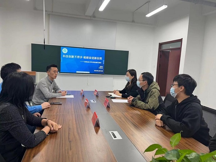 在喜迎党的二十大胜利召开之际,10月19日晚上,计算机系联合科技处开展大学生科技创新能力交流会,科技处副处长蓝清带领任董普、张晓宇一行三人到高新区校区参加交流会,会议由计算机系主任贾冬青主持,计算机系科技创新项目指导教师李亚娟和学生代表参加。
