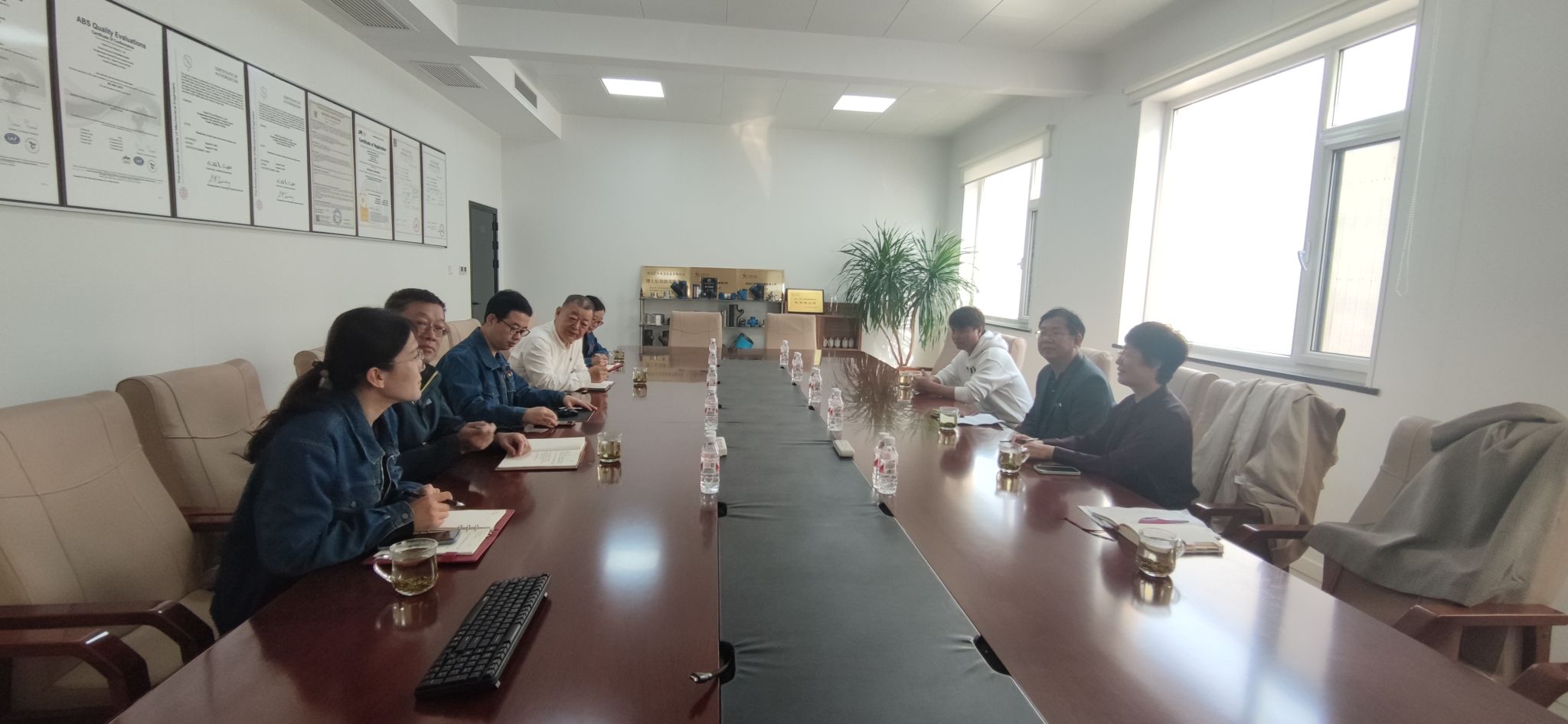苗立峰就经济贸易系专业、师资等基本情况做了详细介绍。张桂芳依据学校优势资源,在产教融合、校企合作模式、人才培养等内容与企业负责人进行了沟通。双方就实习实训合作、企业国际品牌建设、海外投资等多方面内容达成了初步合作意向。