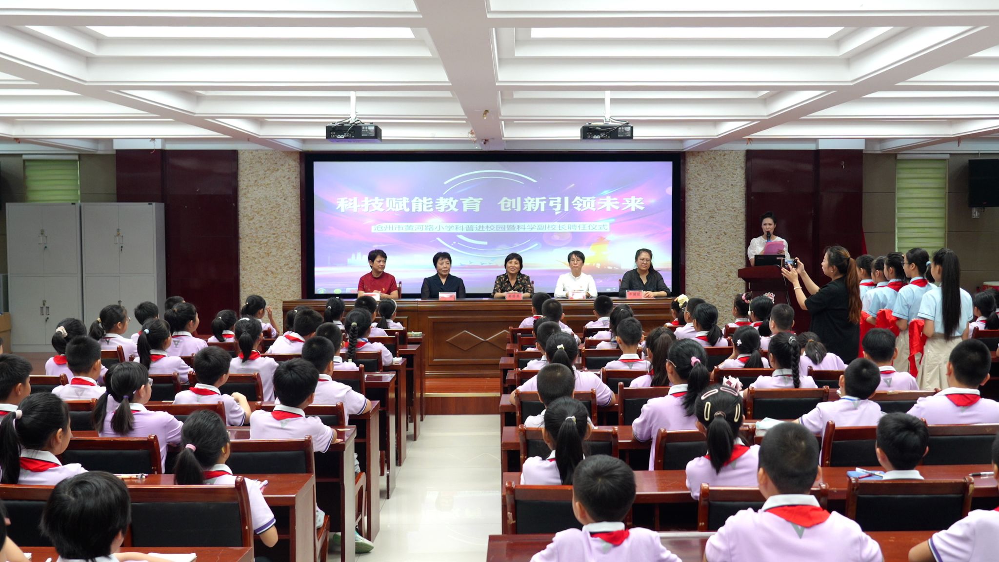 活动期间举行了简朴而庄重的聘任仪式,王凤春教授受聘为黄河路小学科技副校长。双方达成共识,今后将在科技教育、文化传承与实践研学等领域开展深入合作。我校将充分发挥高校资源优势,支持小学教育发展,促进学生在科学和人文素养方面的综合提升。这一合作既是科学普及教育的具体实践,也是探索校地协同育人的重要举措。